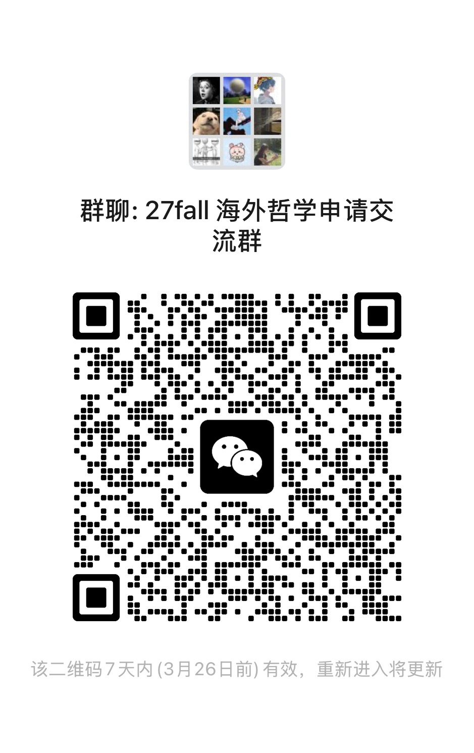 继承26fall英美哲学交流群(希望大家都顺利上岸)建了一个27fall英美哲学交流群,欢迎加入: